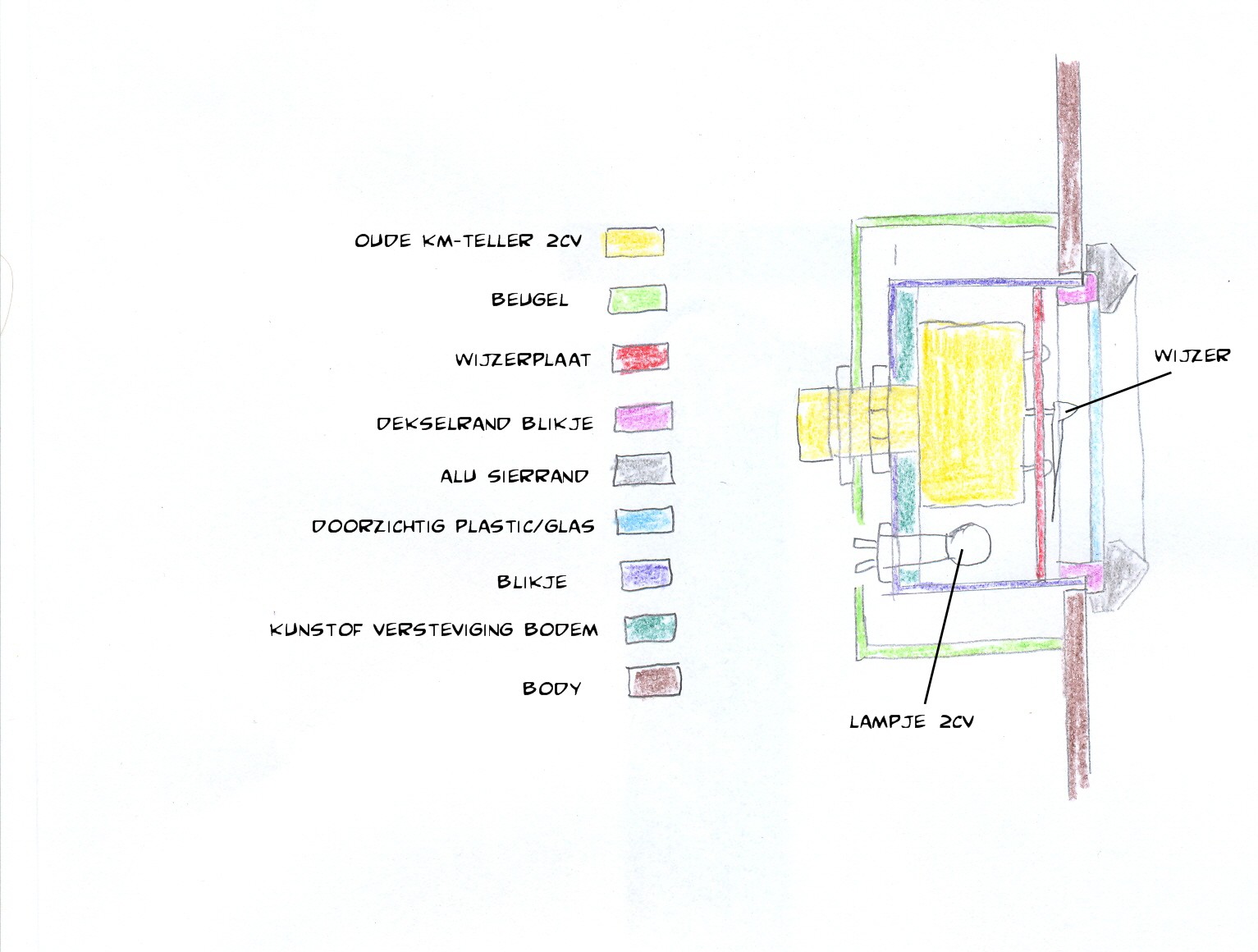 het dashboardkastje heb ik gemaakt van een oud plastic tankje,