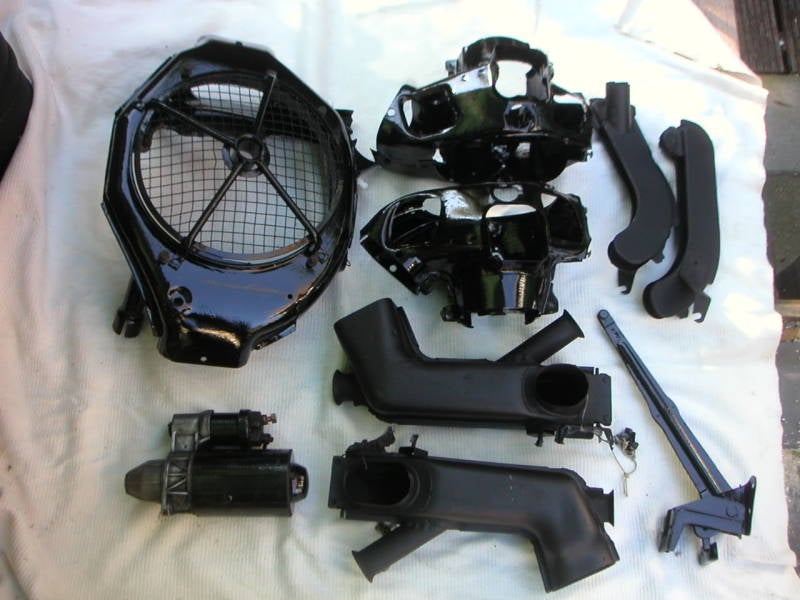 met diverse borsteltjes (staal / koper / tanden) schuurpapier, peut, benzine/diesel en andere ontvetters (vies en geduldig werkje) de boel eens lekker schoonmaken en opschuren en dan alles opnieuw in de grondverf.